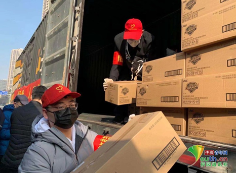 戴毓诚在市团委帮忙搬运消毒液