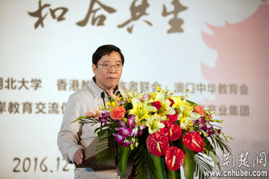 刘玉堂在华夏园丁大联欢上作《楚文化的正能量》专题报告。记者安立 摄
